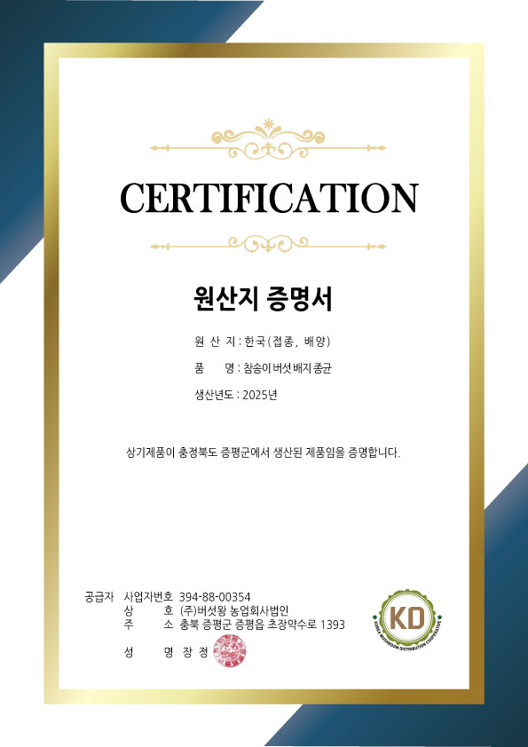 버섯왕 배지 인증서
