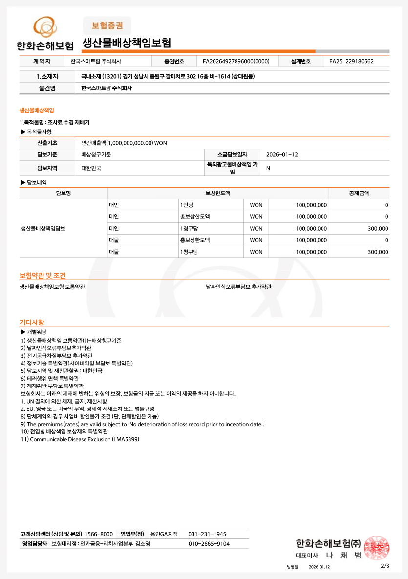 스마트팜 보험 인증서